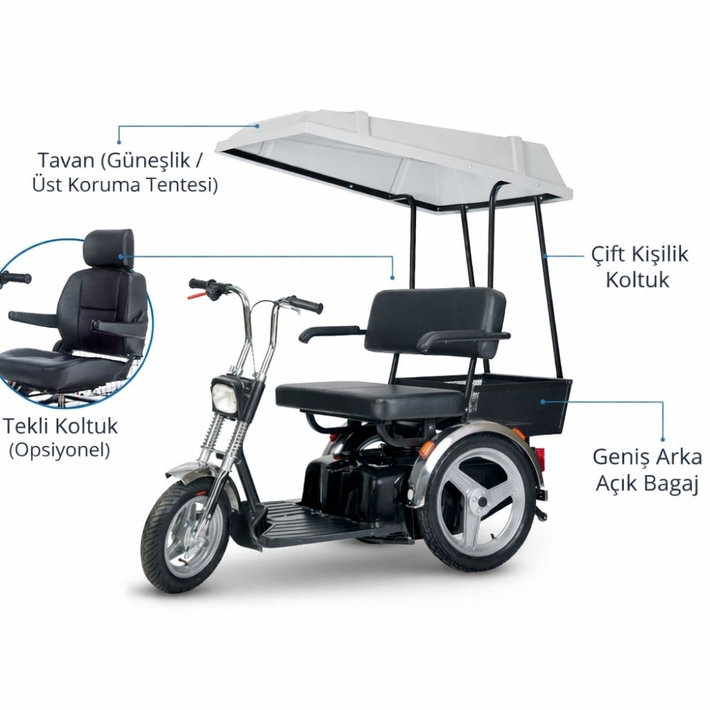 Güçlü motor yapısı ve dayanıklı şasisi ile uzun ömürlü kullanım vadeden Afiscooter SE, yüksek taşıma kapasitesi sayesinde farklı kullanıcı ihtiyaçlarına cevap verir. Büyük pnömatik tekerlekleri sayesinde engebeli zeminlerde bile dengeli ve konforlu sürüş sağlar. Özellikle iki kişilik scooter, çift koltuklu engelli aracı ve dış mekan engelli scooter arayışında olan kullanıcılar için ideal bir çözümdür.