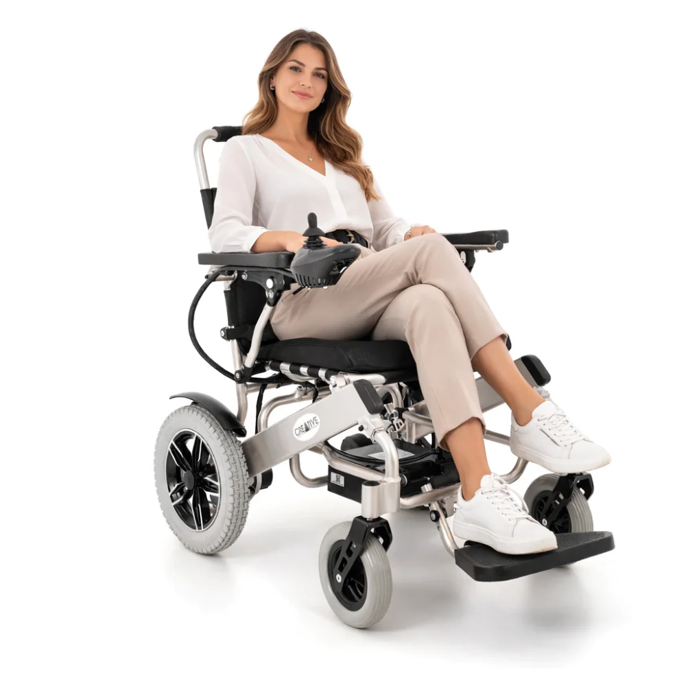 Creative CR-6012 Lityum Pilli Hafif Akülü Sandalye, hem iç hem dış mekânlarda rahatlıkla kullanılabilen, katlanabilir ve hafif yapılı akülü tekerlekli sandalyedir. Eloksallı alüminyum gövdesi sayesinde korozyona dayanıklıdır ve pratik katlanabilme özelliği ile taşıma açısından büyük kolaylık sağlar. Özellikle dar alanlarda hareket kabiliyeti gerektiren kullanıcılar için tasarlanmıştır.