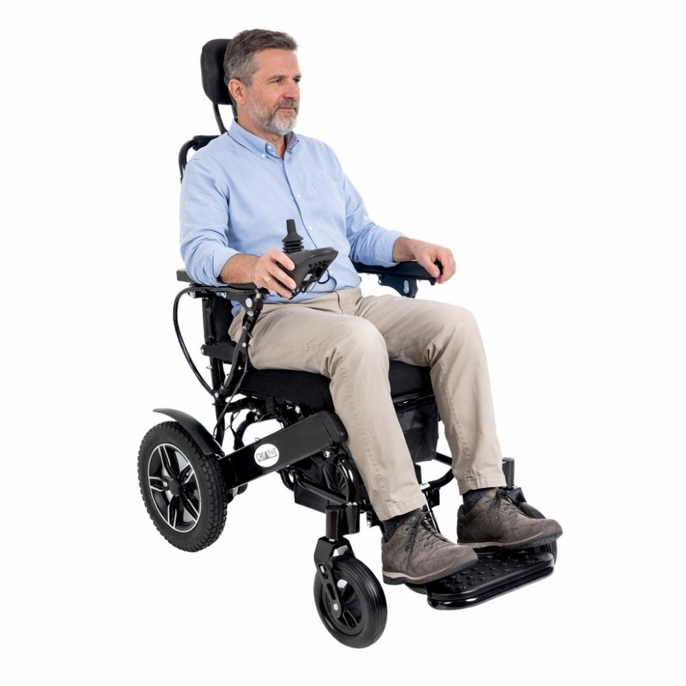 Creative CR-6012 Lüx Sırt Yatar Katlanabilir Akülü Tekerlekli Sandalye, hem iç hem de dış mekanlarda kullanılmak üzere tasarlanmış, lityum pilli, baş ve sırt destekli ergonomik bir akülü tekerlekli sandalyedir. Katlanabilir alüminyum şasesi ve kolay taşınabilir yapısıyla mobilite ihtiyacınıza modern ve güvenli bir çözüm sunar.