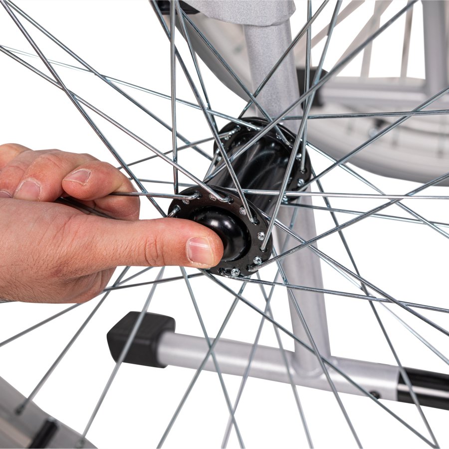 - 24″ arka ve 8″ ön PU dolgulu tekerlekler sessiz ve pürüzsüz sürüş sağlar.
