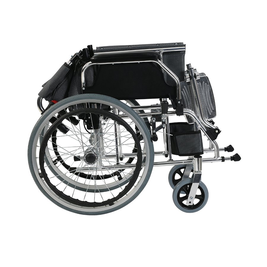 - Alüminyum tekerlekli sandalye gövdesi ile çok hafif ve taşınabilir kullanım sağlar, taşıma yükünü azaltır.