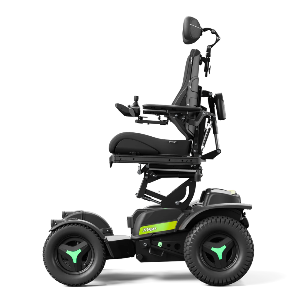 Permobil X850, gelişmiş süspansiyon sistemi ile taşlı, çamurlu veya eğimli arazilerde dahi sarsıntıyı minimuma indirir. Bu sayede hem güvenli hem de konforlu bir sürüş sağlar. Permobil markasının yüksek mühendislik kalitesi ile üretilen bu model, uzun ömürlü kullanım ve üst düzey performans sunar. Permobil büyük tekerlekli akülü sandalye kategorisinde öne çıkan X850, güçlü çekiş kabiliyeti ile kullanıcılarını yarı yolda bırakmaz.