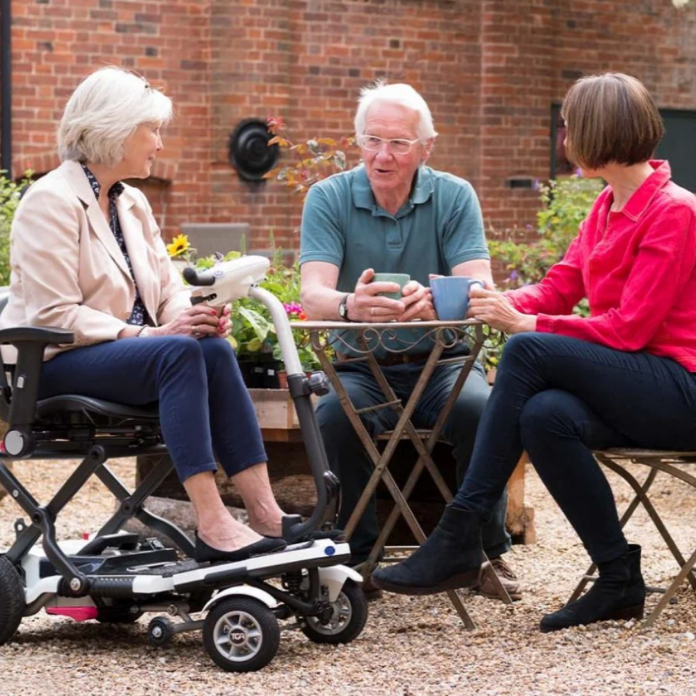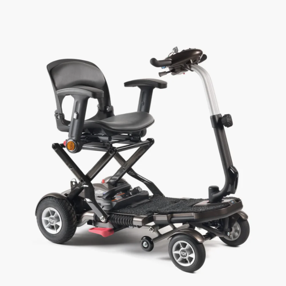 - Katlanabilir engelli scooter tasarımı sayesinde tek hamlede katlanır, taşıma ve depolama çok kolaydır.
