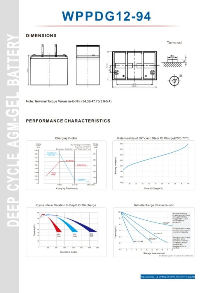 WPPDG12-94 12 V 94 Ah jel akü, dayanıklı ve bakım gerektirmeyen yapısı ile akülü cihazlar, güneş enerjisi ve UPS uygulamalarında güvenilir enerji sağlar.