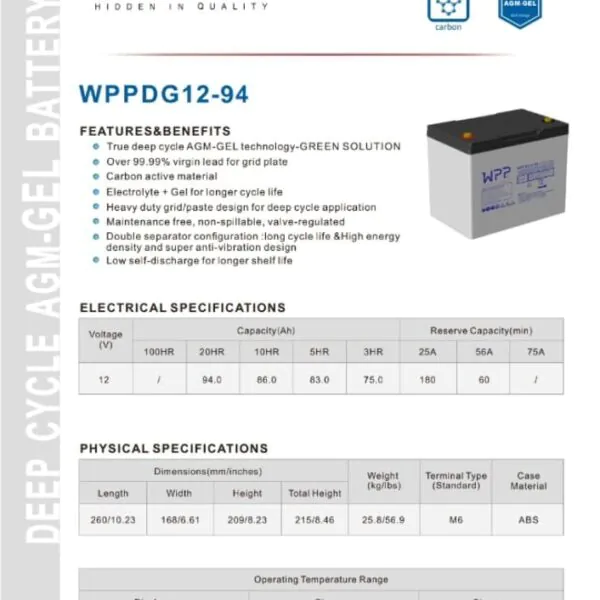 WPPDG12-94 (12V 94Ah )Akülü Tekerlekli Sandalye Aküsü